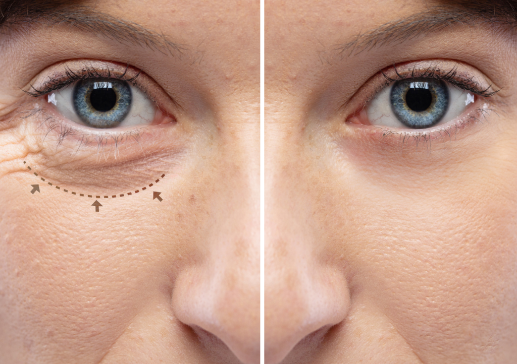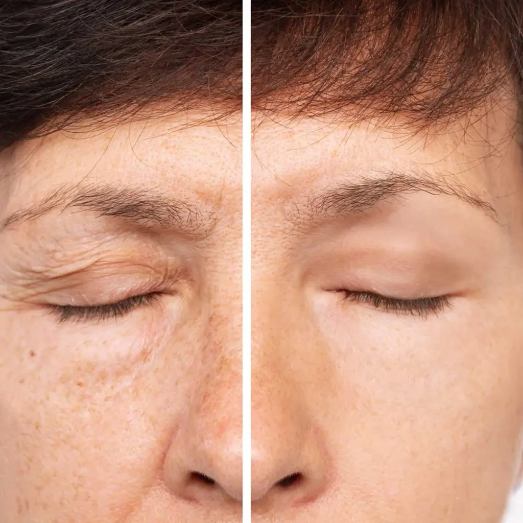 Aparência mais leve, descansada e suave. Redução visível da flacidez e bolsas.